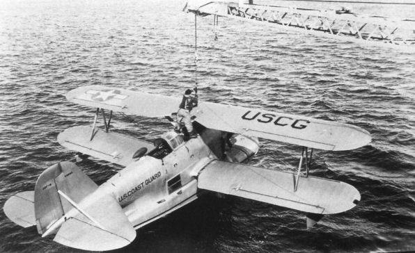 Grumman JF-2 Duck being deployed from cutter Two were carried experimentally on board the cutters Spencer and Taney during pre-war tests