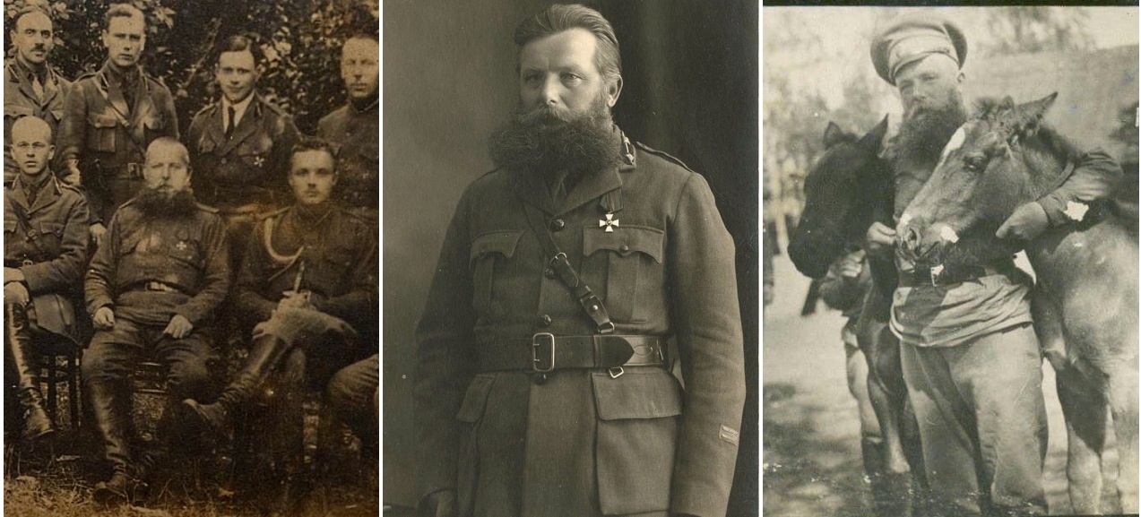 Col. Christopher (Krish-Indrik) Genrikhovich Kücke Krišs Ķūķis. A Lutheran and ethnic Estonian born in 1874 the Courland province, he graduated from the Odessa infantry cadet school and accepted a spot as an ensign in the 37th Yekaterinburg Infantry Regiment in 1900. Earning a St. Anne as a subaltern with the 10th Omsk Siberian Infantry Regiment during the Russo-Japanese War, by August 1914 he picked up a St. George while leading the machine gun company of the 39th Tomsk Infantry Rgt near Loshchev, which was pinned on him by the Tsar himself. Captured while leading a battalion at Lake Naroch in April 1916, he escaped the Revolution by virture of being a guest of the Kaiser at the Helmstedt stalag then, in early 1919, was released through the offices of the British Red Cross and made his way to join Yudenich’s White Army in the Baltics that summer as a company commander. After Yudenich melted away, Genrikhovich would join the Estonian Army (he is seen in a British-supplied Estonian uniform in the center) and held a variety of positions through the late 1920s when he retired. Active in both Estonian and exile politics and a supporter of the assorted “Forest Brothers” groups during the Soviet occupation, he was eventaully liqguidated by Red Partisans in Feburay 1945.