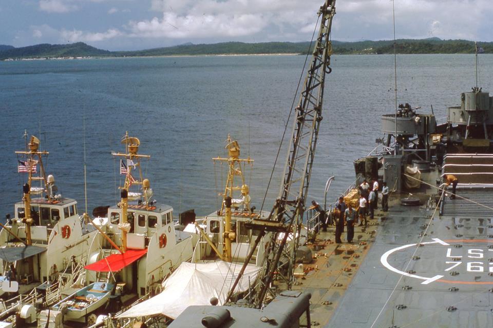USCG Coast Guard Vietnam WPB Point class 82 foot patrol boats Market Garden On station An Thoi, S. Vietnam USS Floyd County (LST-762)