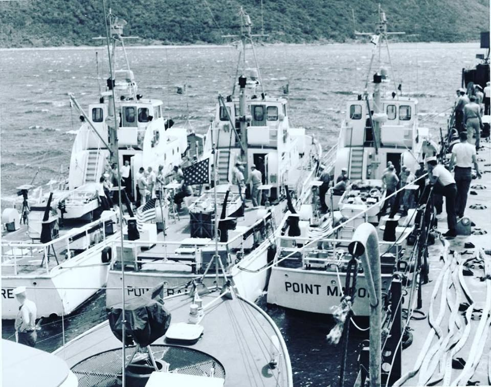 USCG Coast Guard Vietnam WPB Point class 82 foot patrol boats Market Garden On station likely An Thoi, S. Vietnam USS Floyd County (LST-762)