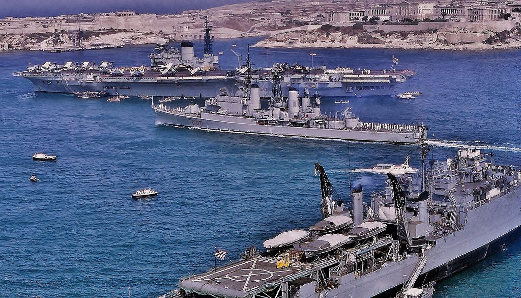 Victorious in Grand Harbour, Malta en route back to the UK following her 1966–67 Far East cruise, image via WIki