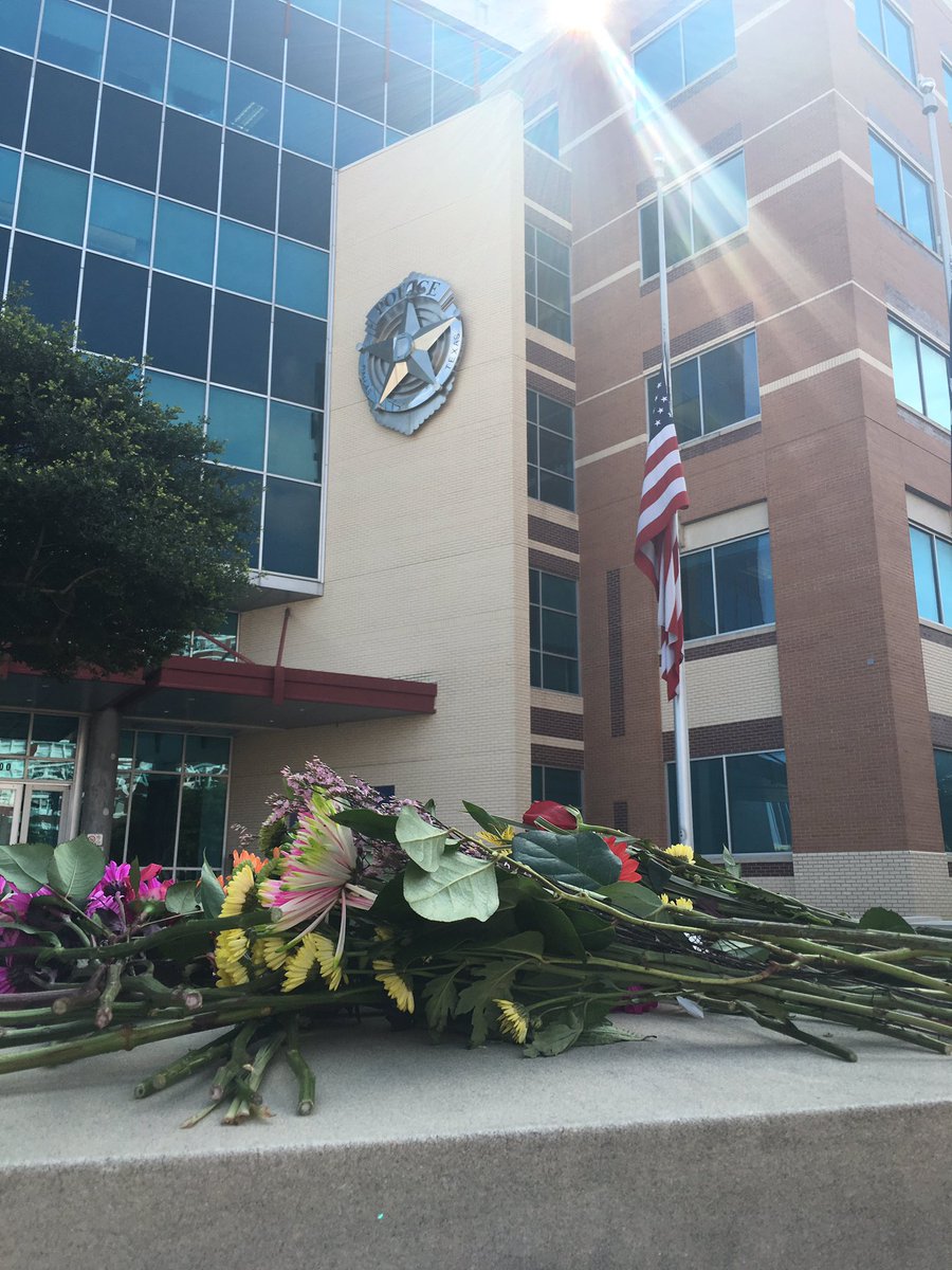 Dallas Police Headquarters Friday morning at sunrise Posted on July 8, 2016 by laststandonzombieisland Leave a comment Return to We are one people. And we stand together.