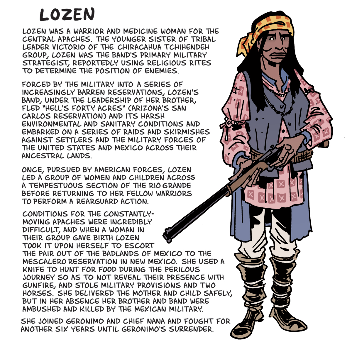 Like most of these, she ended on a bummer, dying of TB in a cramped and unsanitary Alabama prison camp Lozen apache warrior Posted on July 10, 2016 by laststandonzombieisland Leave a comment Previous Next Return to Combat Gallery Sunday: The Martial Art of Chris Schweizer