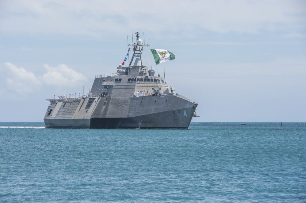 PEARL HARBOR (June 29, 2016) USS Coronado (LCS 4) arrives at Joint Base Pearl Harbor-Hickam for Rim of the Pacific 2016. Twenty-six nations, more than 40 ships and submarines, more than 200 aircraft and 25,000 personnel are participating in RIMPAC from June 30 to Aug. 4, in and around the Hawaiian Islands and Southern California. The world’s largest international maritime exercise, RIMPAC provides a unique training opportunity that helps participants foster and sustain the cooperative relationships that are critical to ensuring the safety of sea lanes and security on the world’s oceans. RIMPAC 2016 is the 25th exercise in the series that began in 1971. (U.S. Navy Photo By Mass Communication Specialist 1st Class John Herman/RELEASED)