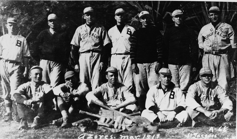 The ship’s baseball team ashore in the Azores in March 1919. Photographed by St. Jacques. Courtesy of Paul H. Silverstone, 1983. U.S. Naval History and Heritage Command Photograph. Catalog #: NH 94998