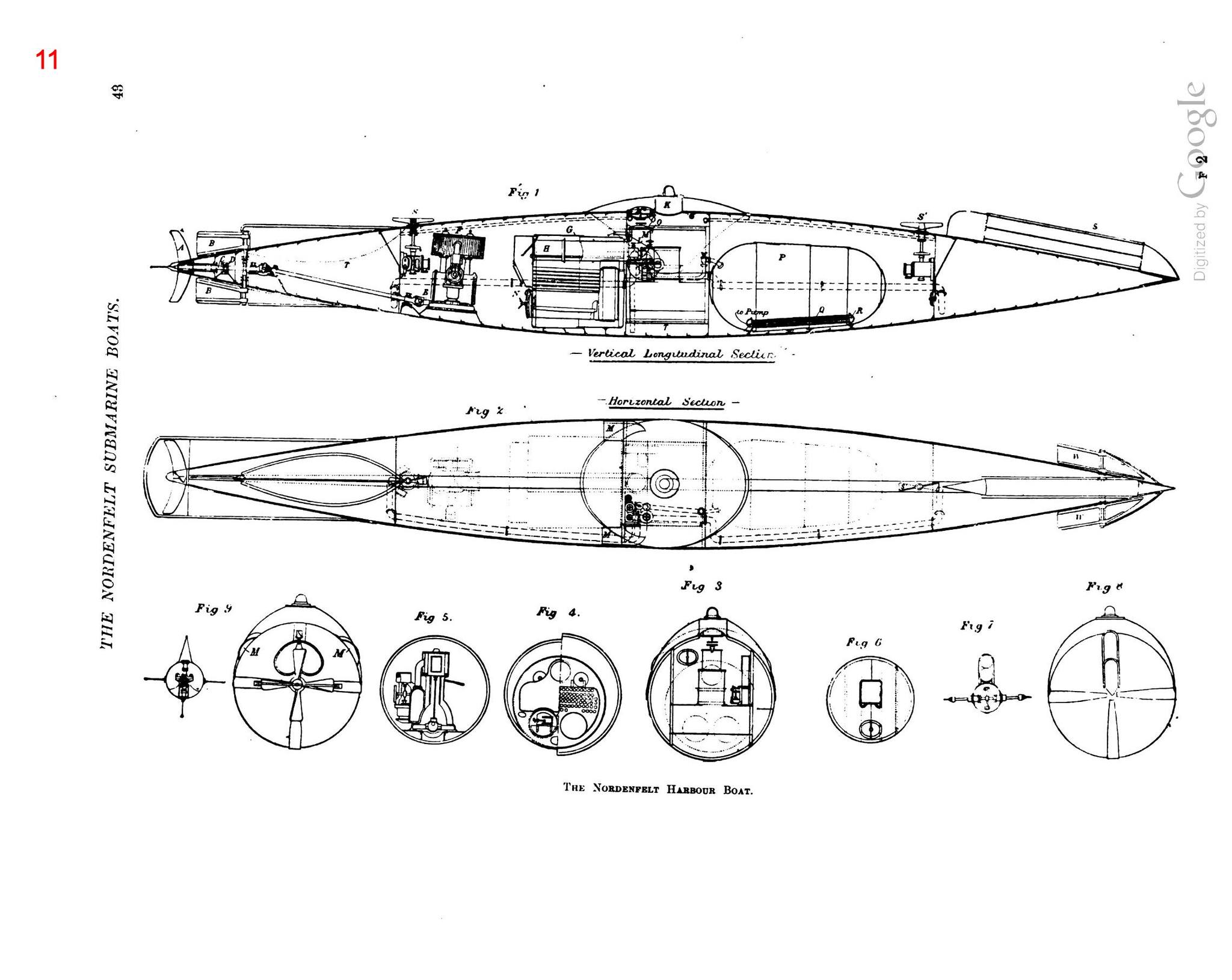 Sections and plan view of the Turkish Nordenfelt submarines The ottoman Steam Navy 1828-1928
