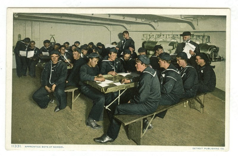 uss brooklyn 1890 apprentice boys at school detriot publishing co Posted on September 4, 2016 by laststandonzombieisland Leave a comment USS Brooklyn, “Apprentice boys at school.” Note the casemate gun Next Return to Bluejackets at play in the last part of the 19th Century