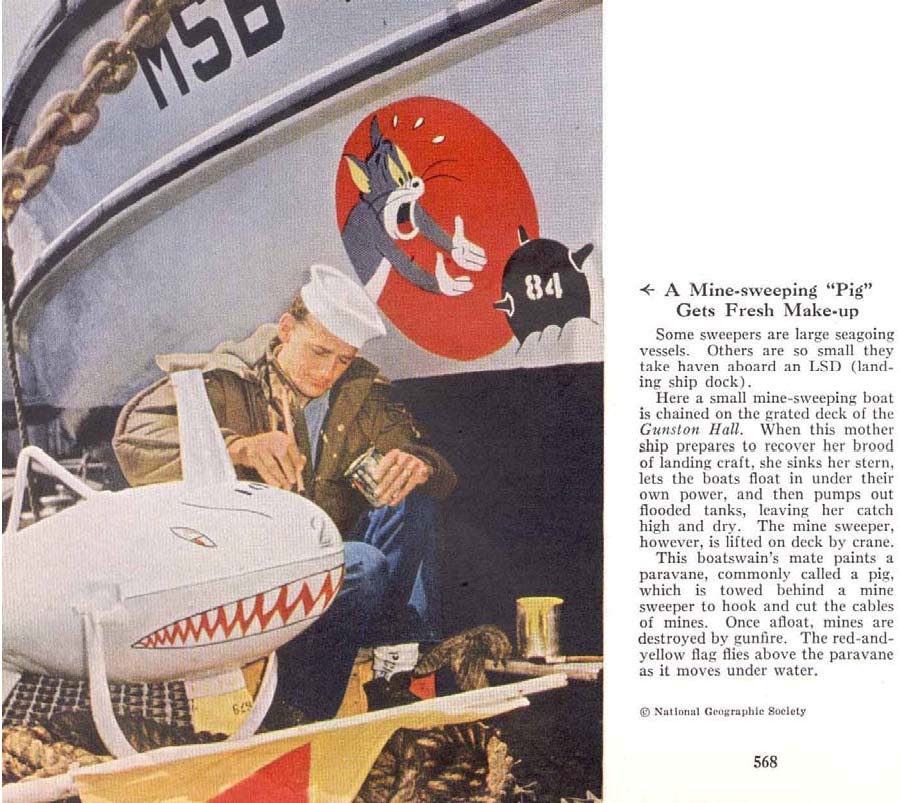 Each MSL could carry their own paravanes and sweep gear as shown in this 1953 National Geographic shot of a Korean War-era MSB