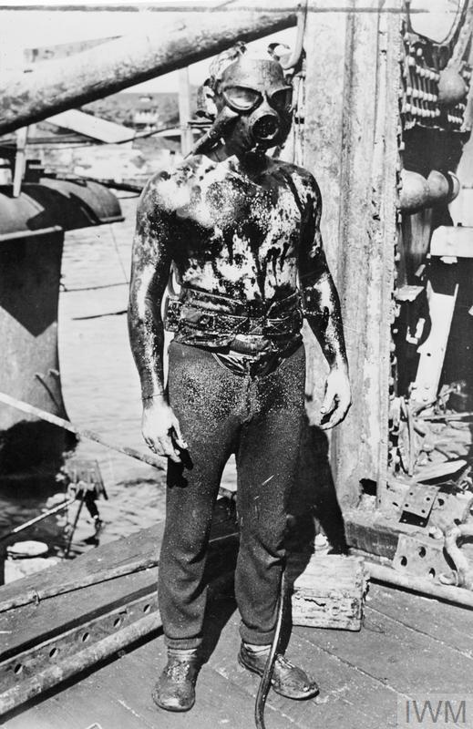 An oil covered US Navy diver after working on one of the sunken ships, Pearl Harbor, Hawaii, 7th December 1941.