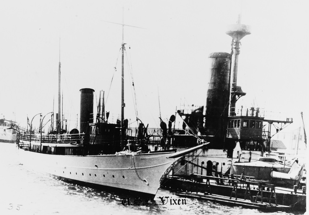 Photographed circa the early 1900s. USS TERROR (Monitor No. 4) is on the opposite side of the pier. Terror was laid up at Philadelphia from 1906, a port shared by Vixen, so this is likely around that time. Description: Courtesy of Rear Admiral Joseph M. Worthington, USN (retired) Catalog #: NH 90937