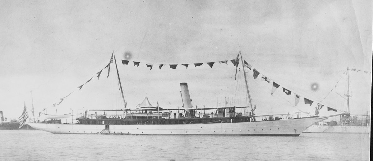 Almost like her yacht days…USS VIXEN (1898-1923, later PY-4) Caption: At Santiago, Cuba, on 20 May 1903. USS OLYMPIA (C-6) is in the right background. Description: Collection of Commander R. Roller Richardson, USN (MC). Donated by B. Bradford Richardson, 1988. Catalog #: NH 96571