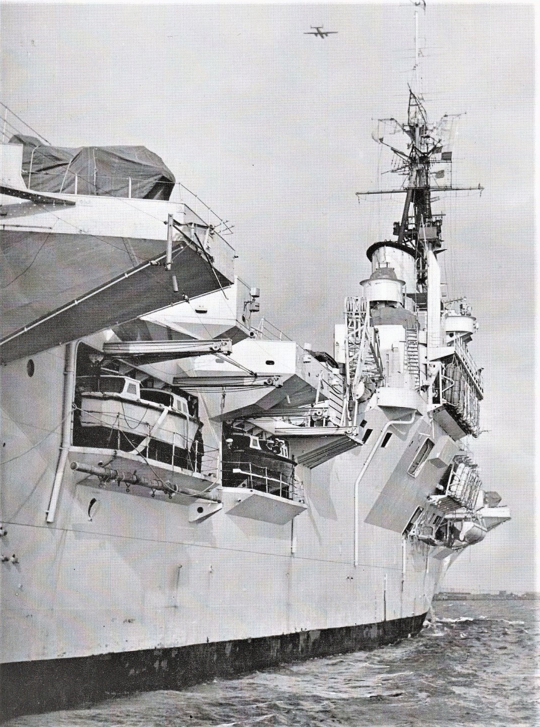 Dutch aircraft carrier KAREL DOORMAN, ex British VENERABLE, circa 1950. Note the Carley floats and extensive small boat arrangement