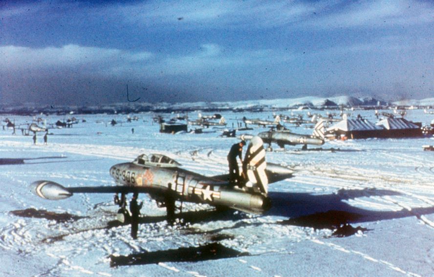 Entering service in Korea in December 1950, the F-84 became an important interdiction aircraft. (U.S. Air Force photo)