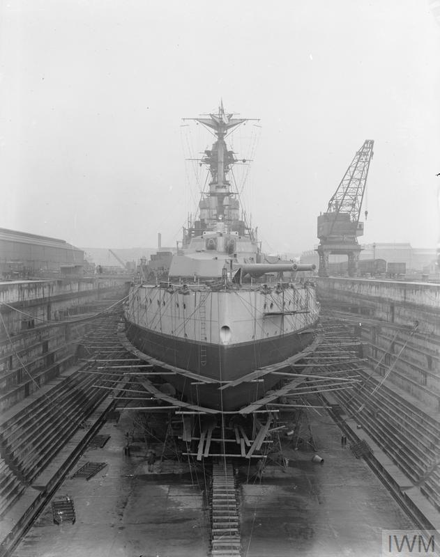 THE ROYAL NAVY ON THE HOME FRONT, 1914-1918 (Q 18779) HMS Valiant in a dry dock. Copyright: © IWM. Original Source: http://www.iwm.org.uk/collections/item/object/205253225