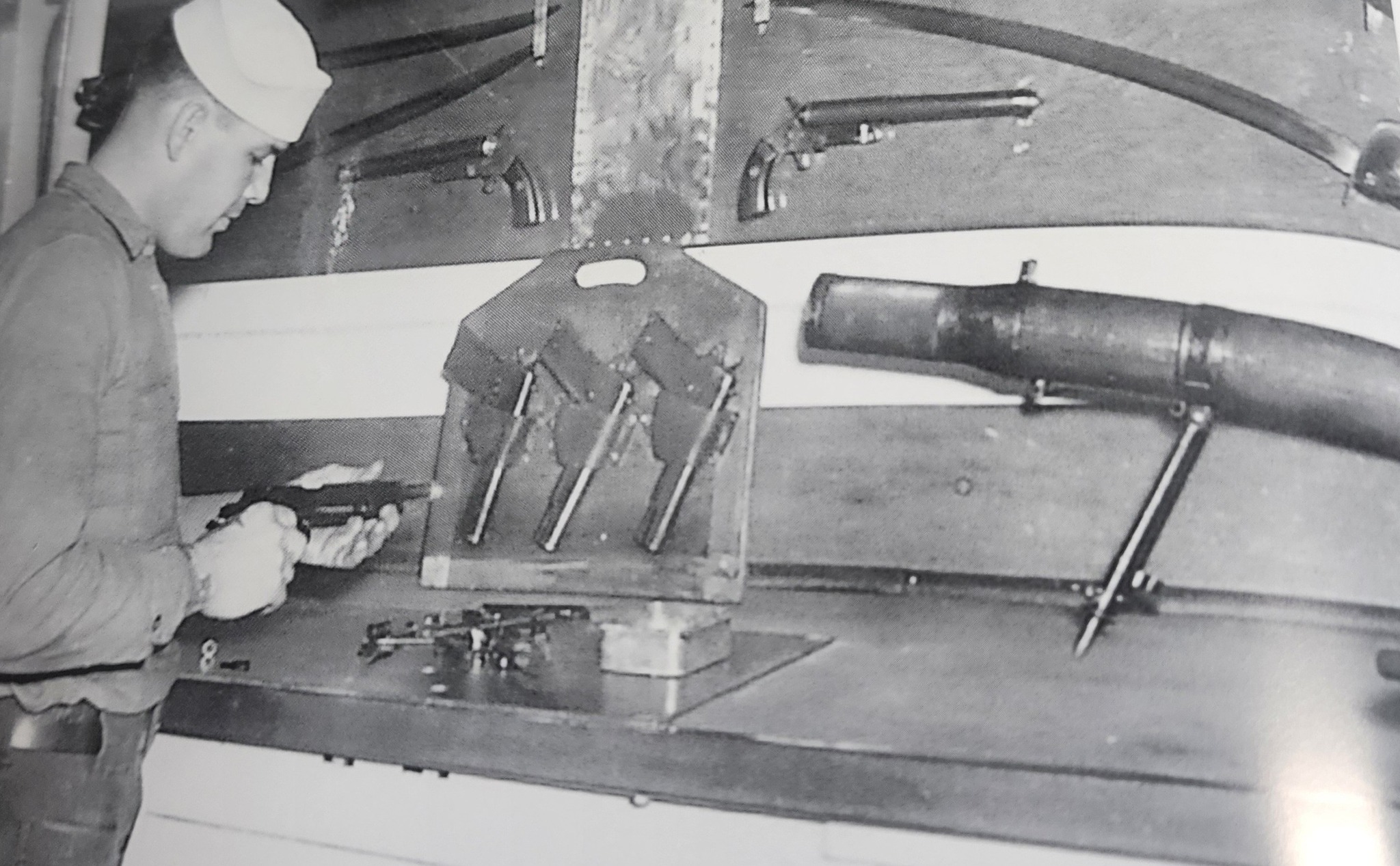 1911 board 1917 U.S. Navy Cutlass on ships Lewis guns M1894 flare guns