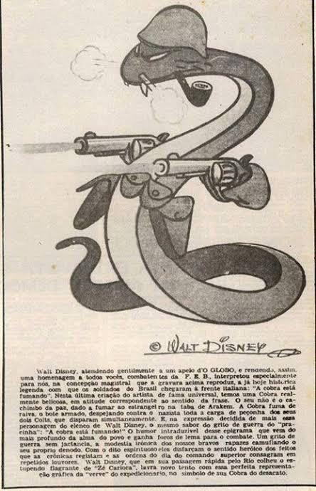 Walt Disney propaganda drawing for the Brazillian Expeditionary Force in WW2, known as the Smoking Sankes COBRAS FUMANTES ETERNA É SUA VITORIA