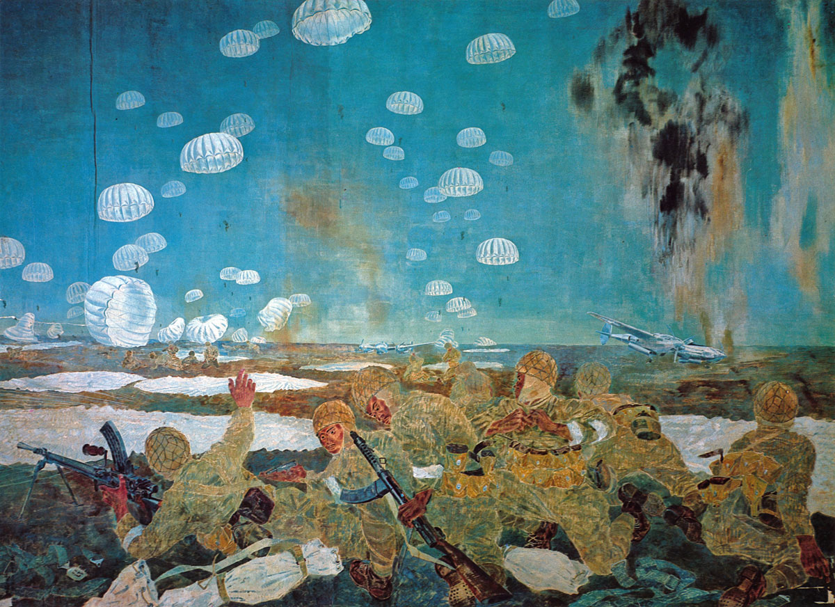 type 100 smg Teishin Shudan Paratroopers attacking a american Airbase at the Battle of Leyte, December 1944. Oil Painting by Kenji Yoshioka, 1945. japanese Posted on April 9, 2018 by laststandonzombieisland Leave a comment Previous Next Return to Oh look, Japan has Marines again
