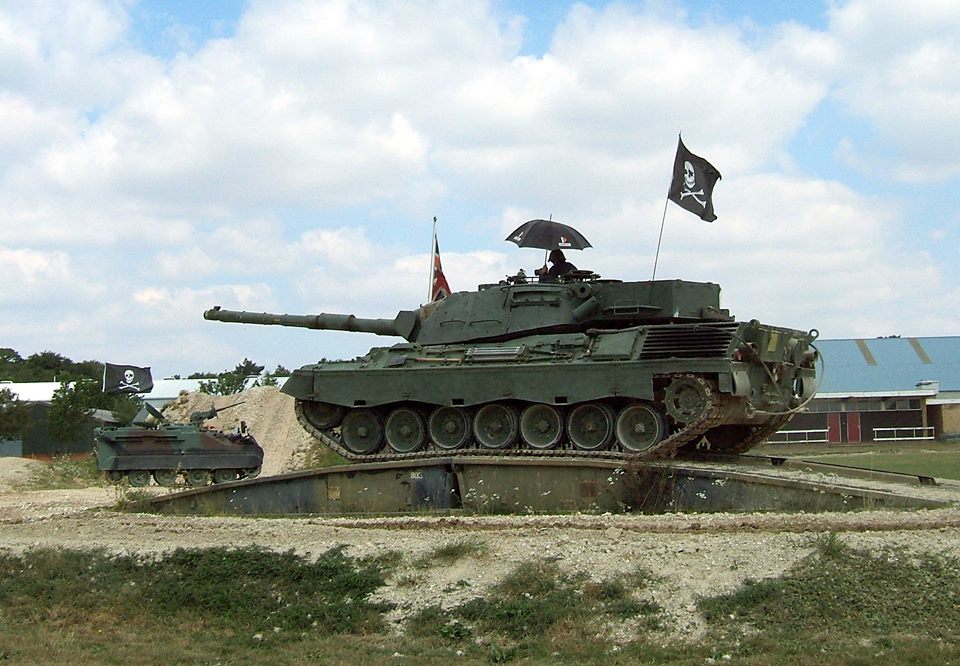 Canada Bovington Tank Museum – Leopard C2 jollyroger umbrella Posted on June 23, 2018 by laststandonzombieisland Leave a comment Bovington Tank Museum’s Leopard C2, complete with Jolly Roger and umbrella Previous Next Return to Some peculiar Englishmen, their hound, and their umbrella, 74 years ago today