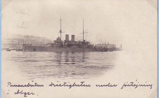 Postcards of the Swedish battleship HMS Dristigheten in Algiers, 1906 Posted on August 22, 2018 by laststandonzombieisland Leave a comment Postcard of the Swedish battleship HMS Dristigheten in Algiers, 1906 Previous Next Return to Warship Wednesday, Aug. 22, 2018: Oscar’s boldest pansarbat