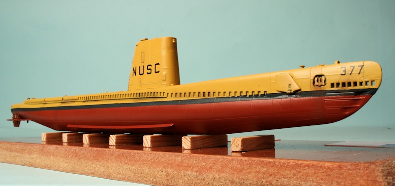 Balao-Class USS Menhaden shown in model re-fitted as a remotely-controlled, unmanned acoustic test vehicle, known as the ‘Yellow Submarine’ serving with the Naval Underwater Systems Center until she was scrapped in 1988 Via ARC Forums http://www.arcforums.com/forums/air/index.php?/topic/281885-whiskey-lemon-two-new-1350-scale-subs-completed/