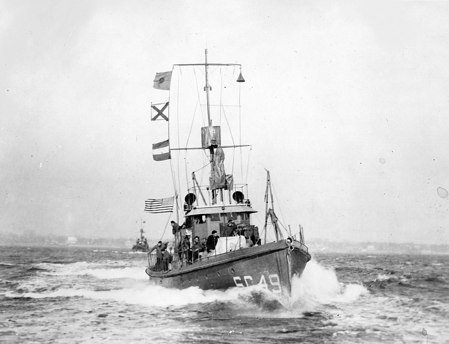 Submarine Chaser SC-49 parading with other Sub Chasers off an unknown East Coast port following the end of the First World War