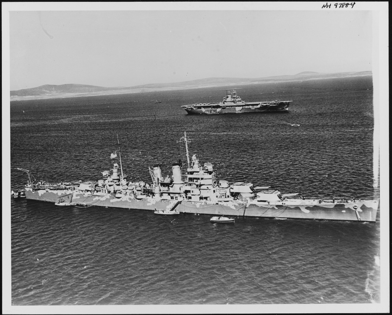 At anchor in Scapa Flow in April 1942. USS Wasp (CV-7) is in the background. Catalog #: NH 97884