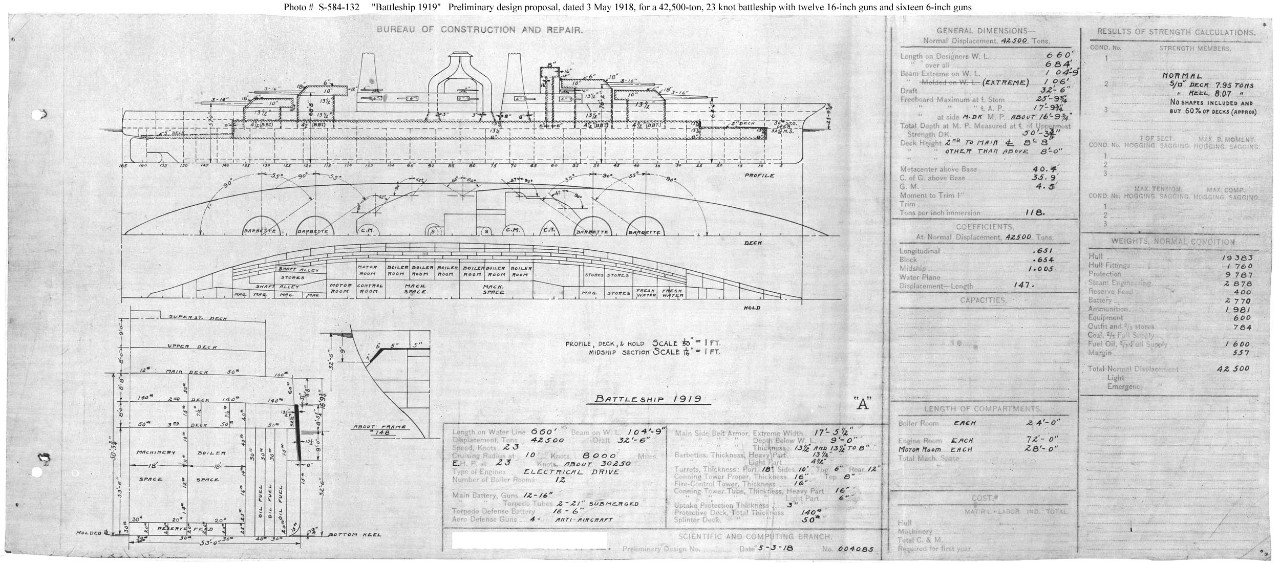 Preliminary Design for the 1919 Program Battleships … May 3, 1918 A preliminary design plan for battleships to be built with Fiscal Year 1919 funding. This plan represented the final development of the South Dakota (Battleship # 49) class preliminary design. Photo #: S-584-132
