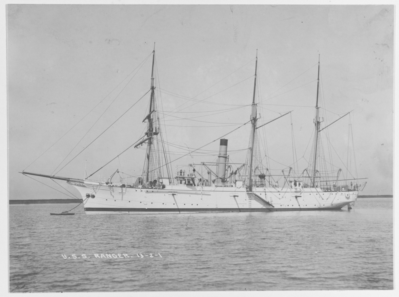 USS RANGER photographed after she received 6 4-inch breech-loading rifles in 1897. After this refit she could be distinguished from her sister ALERT by her funnel casin NH 44605