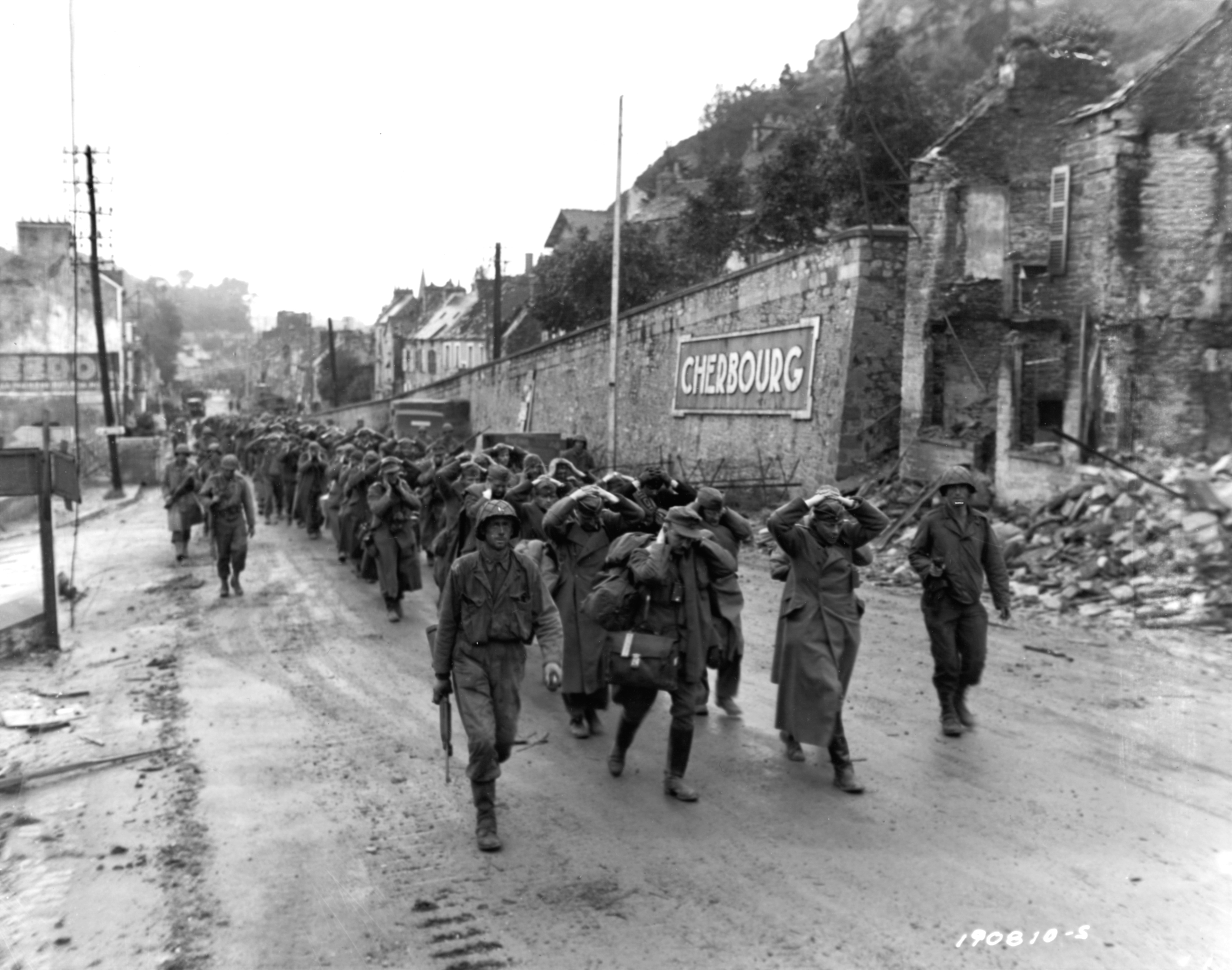 German prisoners march out of surrendered Cherbourg under U.S. Army guard. U.S. Navy photo M1 carbines 1911 Posted on June 9, 2019 by laststandonzombieisland Leave a comment German prisoners march out of surrendered Cherbourg under U.S. Army guard. U.S. Navy photo Previous Next Return to Quentin Walsh gets a well-deserved nod