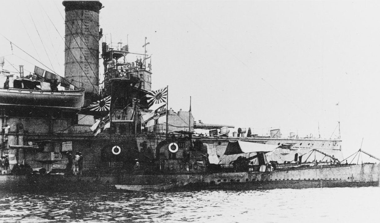 Nisshin U-boats NH 58667 Posted on July 31, 2019 by laststandonzombieisland Leave a comment Nisshin, photographed in 1918-19, with the ex-German submarines O-4 (ex-UC-90) and O-5 (ex-UC-99) alongside. NH 58667 Previous Next Return to Warship Wednesday, July 31, 2019: “80 Sen,” or a young Yamamoto’s Italian Stallion