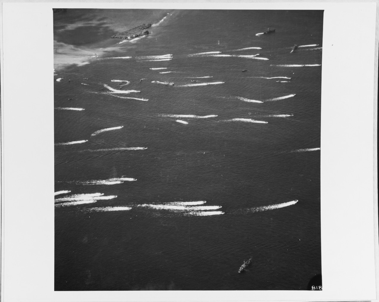 Landing craft returning to their transports, after landing Marines near Asan Beach, Guam, on 21 July 1944. National Archives 80-G-248260