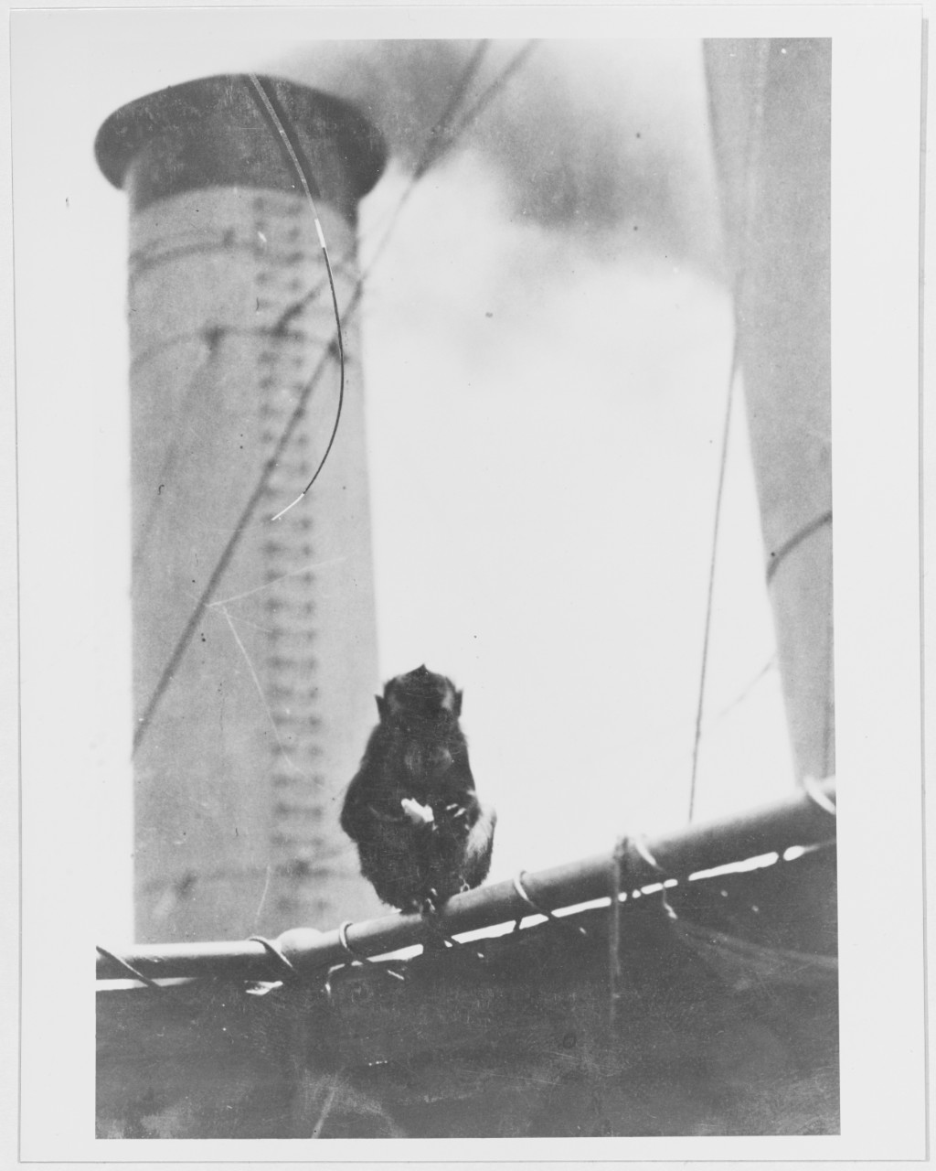 NH 52462 Posted on October 8, 2019 by laststandonzombieisland Leave a comment A more unsung member of her crew, Loui the monkey, onboard USS CINCINNATI in 1912. Courtesy of Lieutenant Commander R. Wainwright, USN, 1928 NH 52462 Previous Next Return to Warship Wednesday, Oct 9, 2019: Queen City Admiral Maker