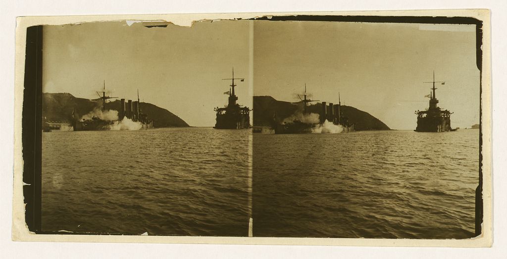 Destroying a fleet — battleship Pallada struck by a 500 lb. Japanese shell — Port Arthur harbor via LOC LC-USZ62-68822