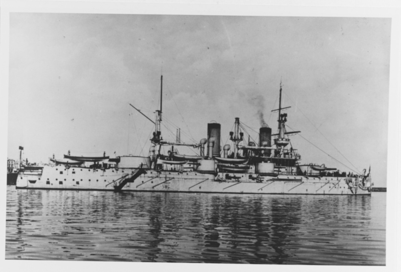 Sevastopol photographed at Algiers in 1901 while en route to the Russian base at Port Arthur where she was scuttled in 1905. Courtesy of J. Meister, Zurich Switzerland, 1975 NH 81876