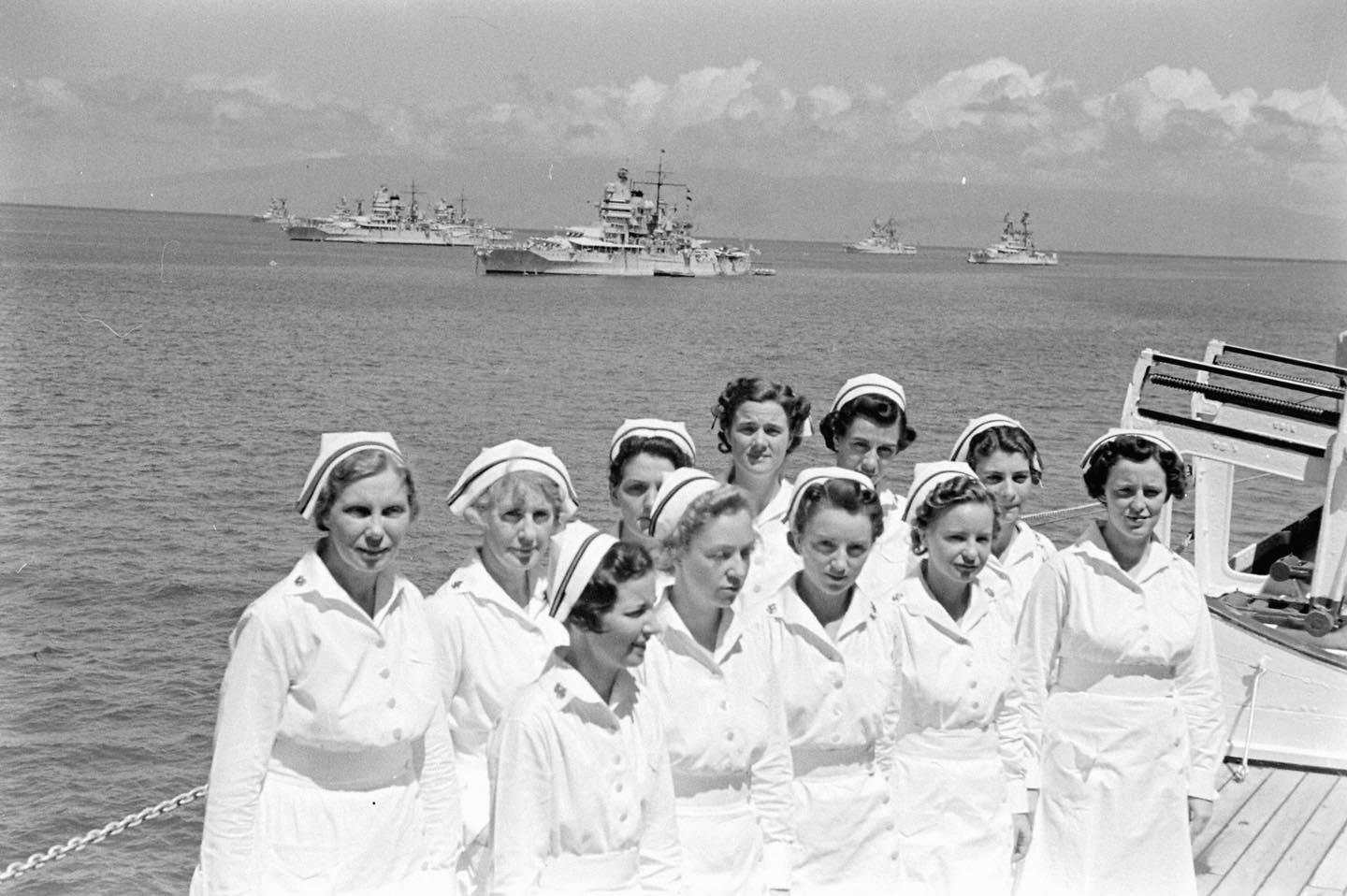 Can you spot Kate Beckinsdale? Here, this period LIFE photo shows U.S. Navy nurses on the Hospital Ship USS Relief AH-1 while the U.S. Pacific Fleet Battleships rest in Lahaina Roads, Hawaii, in the Summer of 1940. Photo by Carl Maydans