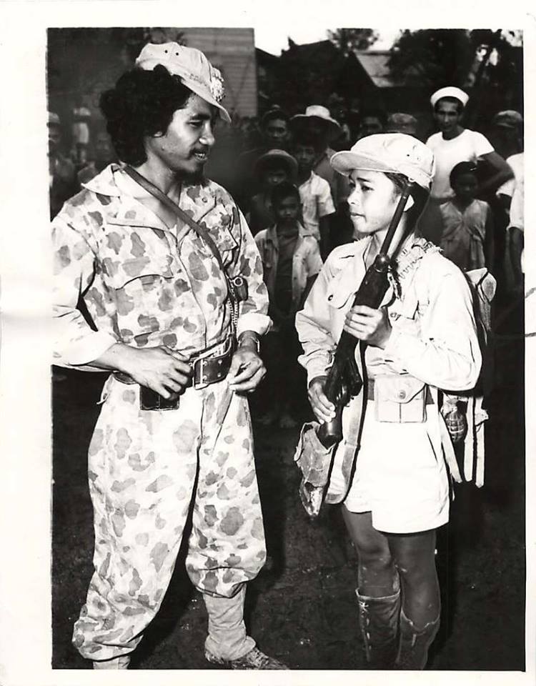 1944- Two young Filipino guerrillas are show after they joined American forces on Leyte. Soldier on right is 16 years old.