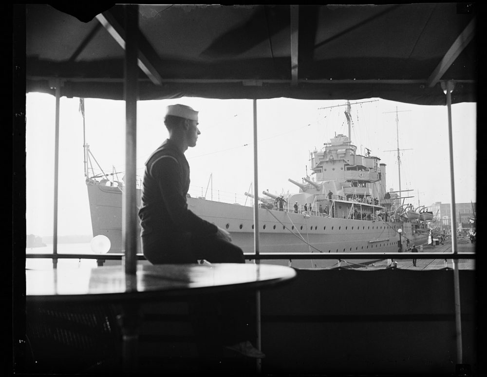 H.M.S. York, flagship of the British West Indian Fleet, docks at the Navy Yard at Washington, D.C 1935 Sequoia,