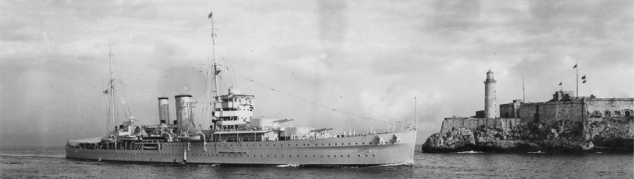 HMS York entering Havana, Cuba 14 January 1938