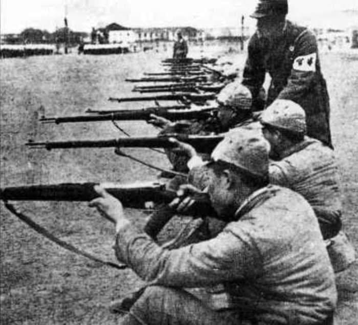 Chinese troops train under Japanese instructors. More than 300,000 soldiers from China fought for Hirohito against their own countrymen between 1937 and 1945.