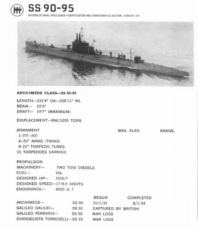 Italian submarine Archimede class Galileo Galilei Ferraris Torricelli Posted on September 22, 2020 by laststandonzombieisland Leave a comment Via the 1943 ONI Guide Previous Next Return to Warship Wednesday, Sept. 23, 2020: Of Stars and Moonstone