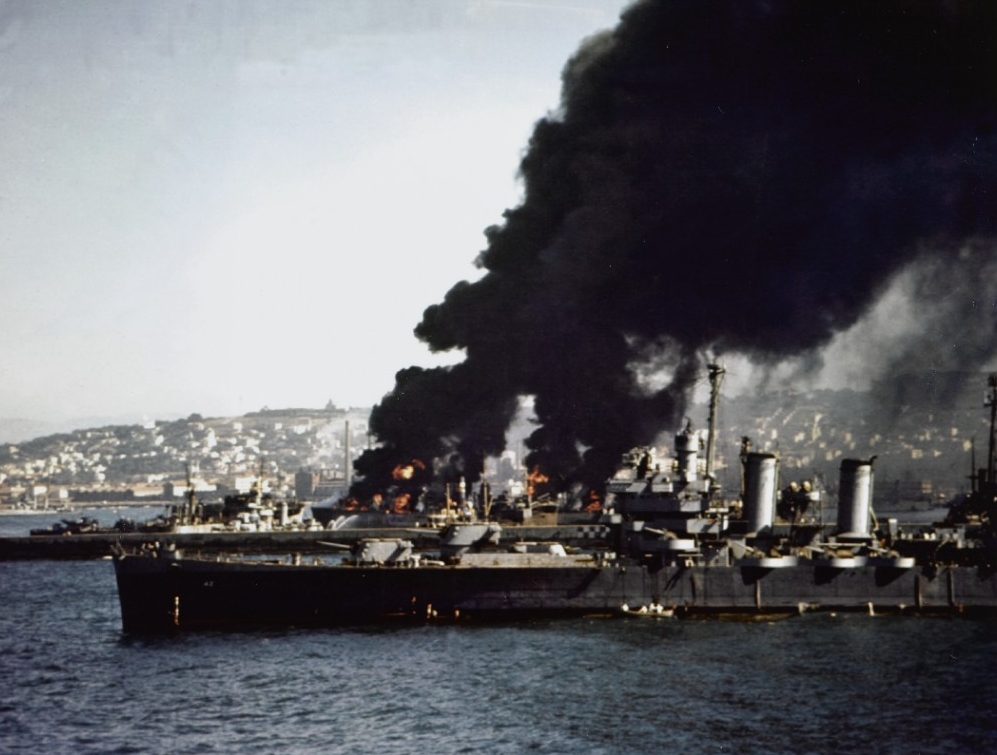 80-G-K-3965 Posted on September 30, 2020 by laststandonzombieisland Leave a comment Savannah stands by to render assistance as vessels burn after Norwegian cargo ship Bjørkhaug explodes in Algiers harbor, 16 July 1943. 80-G-K-3965 Previous Next Return to Warship Wednesday, Sept. 30, 2020: Avalanche, Darby, Husky & Fritz
