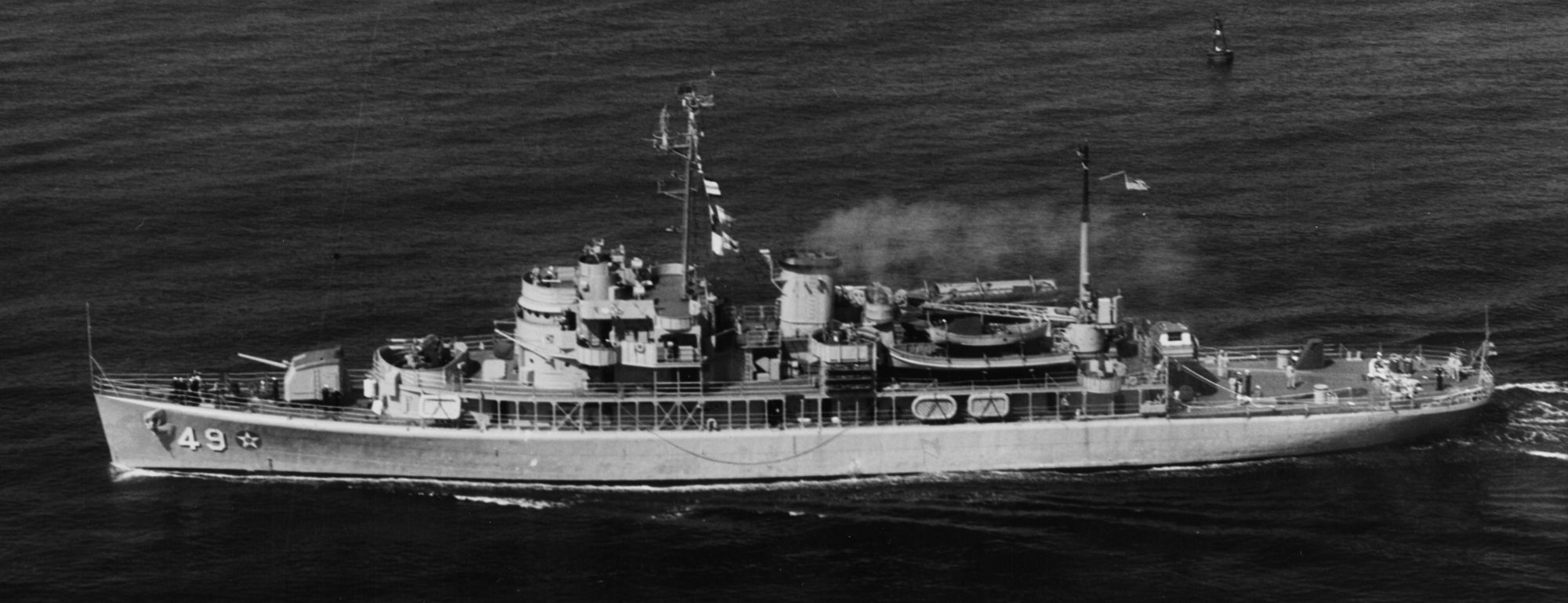 USS Orca (AVP-49) Underway on 4 April 1955. Note the aviation insignia on the bow aft of the hull number. The open 5/38 mount formerly on her fantail was removed between late 1951 and 1955. 80-G-668276