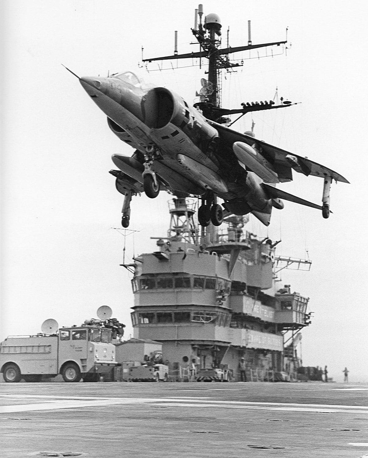 Marine AV-8A Harrier of VMA-513 hovering over USS Guam (LPH-9) 1972 Posted on October 28, 2021 by laststandonzombieisland Leave a comment Marine AV-8A Harrier of VMA-513 hovering over USS Guam (LPH-9) 1972 Previous Next Return to Harrier Carrier, 1976