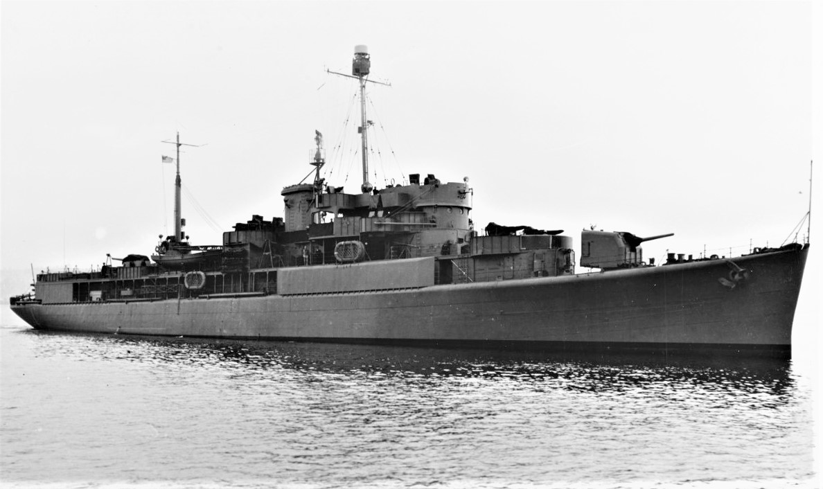Besides the pair of twin 40mm Bofors forward of the bridge, another pair were about amidships, while four single 20mm Oerlikons were aft. Photo from the same series as above, 19-N-54734