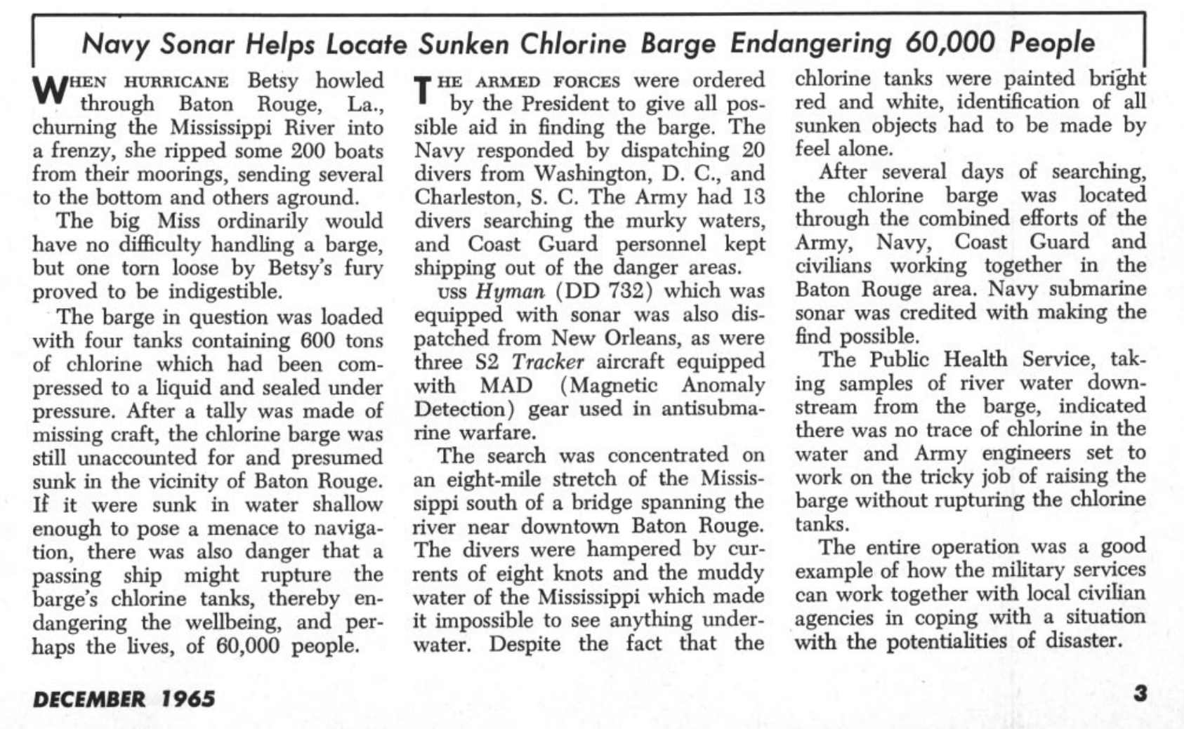 Hurricane Betsy barge USS Hyman Posted on September 14, 2021 by laststandonzombieisland Leave a comment Previous Next Return to Warship Wednesday, Sept. 15, 2021: Hurricane ASW