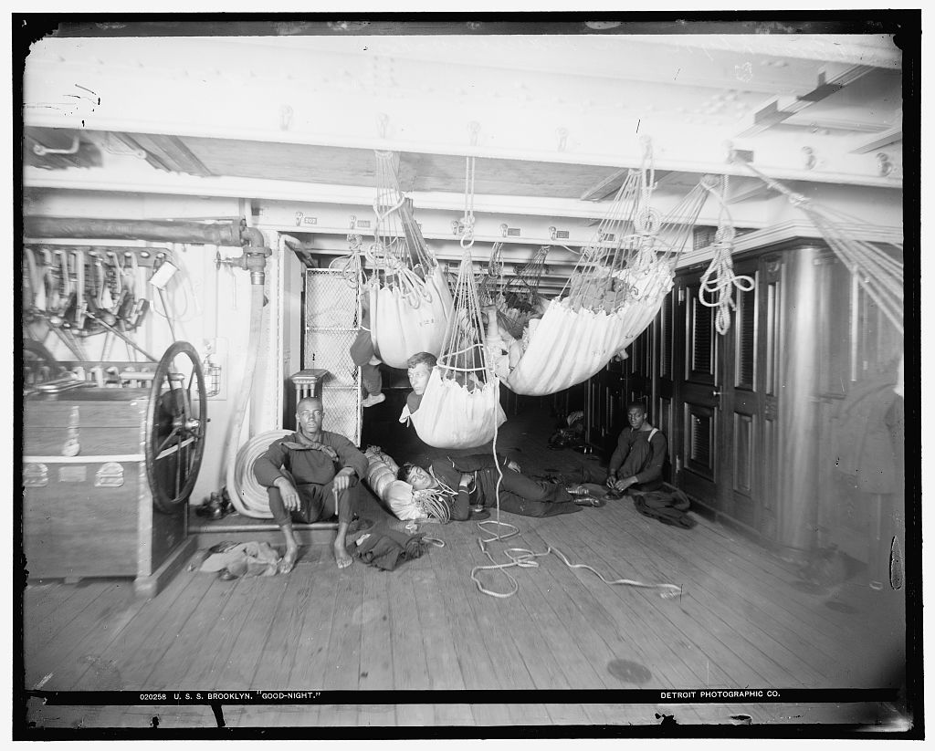 U.S.S. Brooklyn, good-night hammocks note no segregation Posted on December 28, 2021 by laststandonzombieisland Leave a comment U.S.S. Brooklyn, good-night hammocks note there was little to no segregation below decks Previous Next Return to Warship Wednesday, Dec. 29, 2021: Taking a Nap