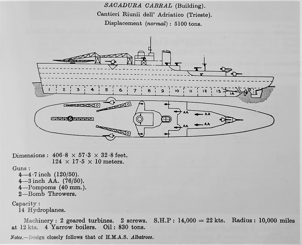 1931 Janes Portugese aviation seaplane carrier Sacadura Cabral based on HMAS Albatross Posted on January 26, 2022 by laststandonzombieisland Leave a comment Sacadura Cabral, based on HMAS Albatross, per Janes. Previous Next Return to Warship Wednesday, Jan. 26, 2022: Ozzie Bird Boat