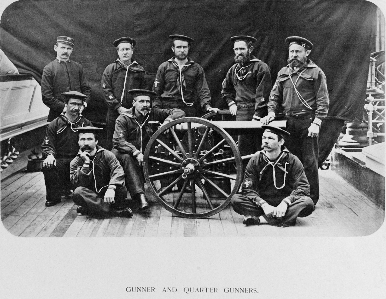 NH 42889 Posted on April 6, 2022 by laststandonzombieisland Leave a comment The ship’s gunner, and the quarter gunners, pose with a landing force field piece, circa 1885-1888. NH 42889 Previous Next Return to Warship Wednesday, April 6, 2022: The Forlorn Hope