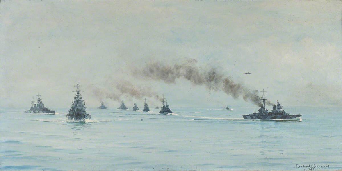Langmaid, Rowland; The Surrendered Italian Fleet with HMS ‘King George V’ and ‘Howe’, 1943; National Maritime Museum; http://www.artuk.org/artworks/the-surrendered-italian-fleet-with-hms-king-george-v-and-howe-1943-174942