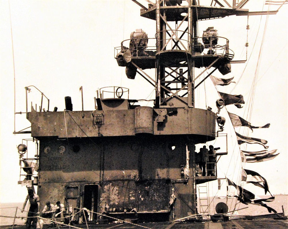 80-G-270689 Posted on September 21, 2022 by laststandonzombieisland Leave a comment Damage done to USS Suwannee (CVE 27) after attack by Japanese suicide plane off Leyte Gulf. Note the shrapnel pattern. Photographed on 26 October 1944. 80-G-270689 Previous Next Return to Warship Wednesday, Sept. 24, 2022: Way Down Upon…